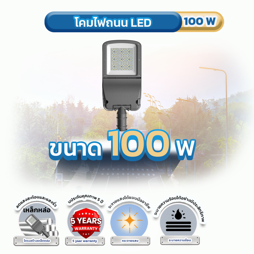 โคมไฟถนน LED 100W ให้แสงสว่าง 13,000-17,000 ลูเมน ราคา2450.-บาท