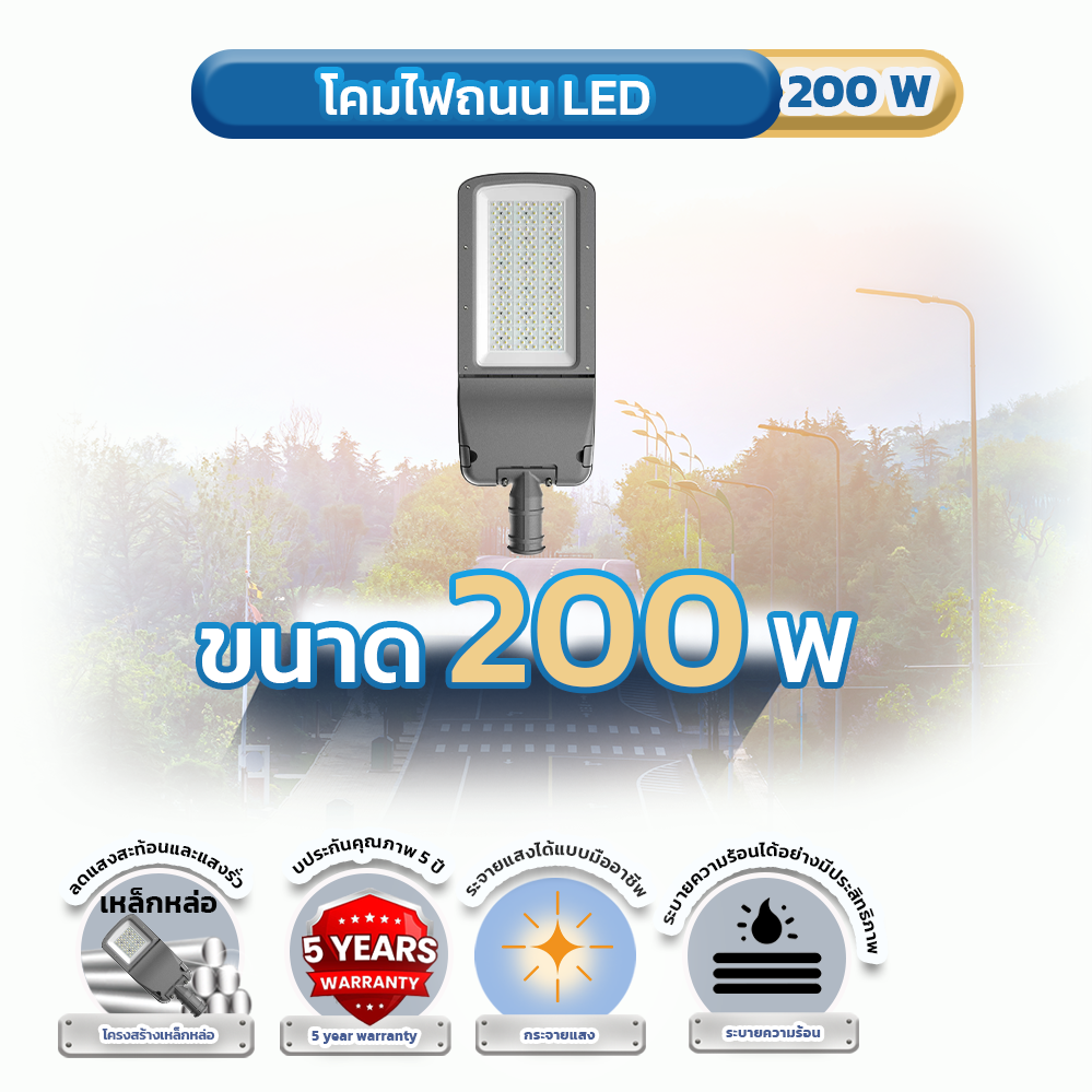 โคมไฟถนน LED 200W ให้แสงสว่าง 26,000-34,000 ลูเมน ราคา2600.-บาท