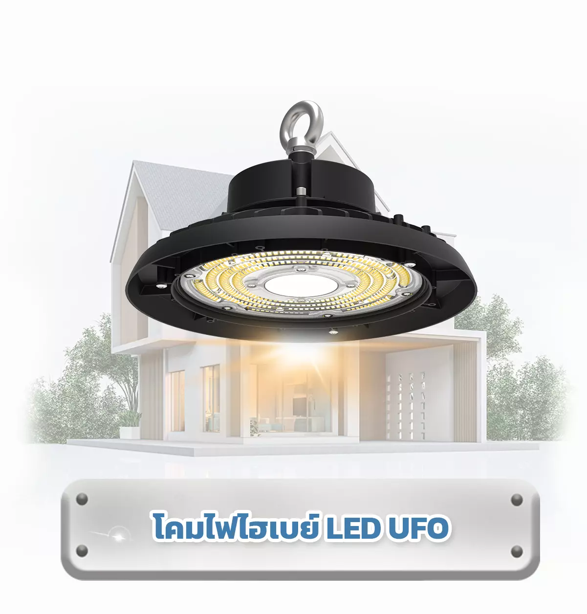 โดย โครมไฟ LED UFO ของ BRIGHT LED ขนาด 100W และ 150W ออกแบบจากวิศวกรผู้เชี่ยวชาญจริง มีขนาดเล็กลงกว่าโคมไฮเบย์แบบเดิม ทำให้ติดตั้งง่ายขึ้น โดยปกติจะมาพร้อม ขอแขวน หรือขายึด เพื่อให้ติดตั้งบนเพดานได้สะดวก และช่วยประหยัดพื้นที่ นอกจากนี้ โคมไฮเบย์ LED UFO ให้ ลูเมนสูง โดยใช้พลังงานต่ำกว่าหลอดไฟ LED ทั่วไป