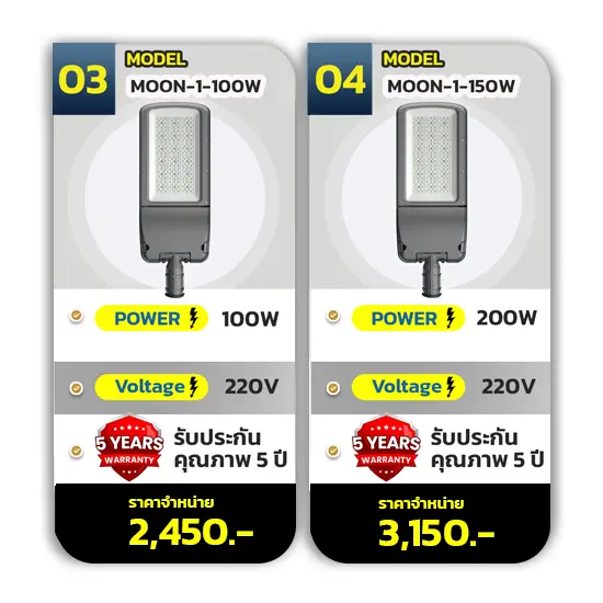- ด้วยราคาที่คุ้มค่าและคุณภาพที่ยอดเยี่ยม ทำให้เป็นโคมไฟถนนที่มีประสิทธิภาพสูง ใช้งานได้ยาวนาน และให้ความคุ้มค่าในระยะยาว เหมาะสำหรับถนนสาธารณะ สวนสาธารณะ ถนนโครงการหมู่บ้าน สนามฟุตบอล ลานจอดรถ และลานกิจกรรมกลางแจ้ง
